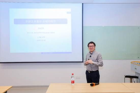 12月19日下午,由理学院数学系主办的中国数学会上海大学数学科普教育基地专家科普报告、数学大师讲坛第十七讲以线上线下同步的形式顺利开讲。线下会场设在校本部 GJ303会议室,线上通过腾讯会议同步进行。本次邀请的主讲嘉宾是中国科学院院士、浙江大学数学高等研究院教授孙斌勇。孙斌勇院士为在场师生作了题为《李群及其表示-介绍和例子》的学术报告。校内外师生近100人线上线下共同聆听了报告。
